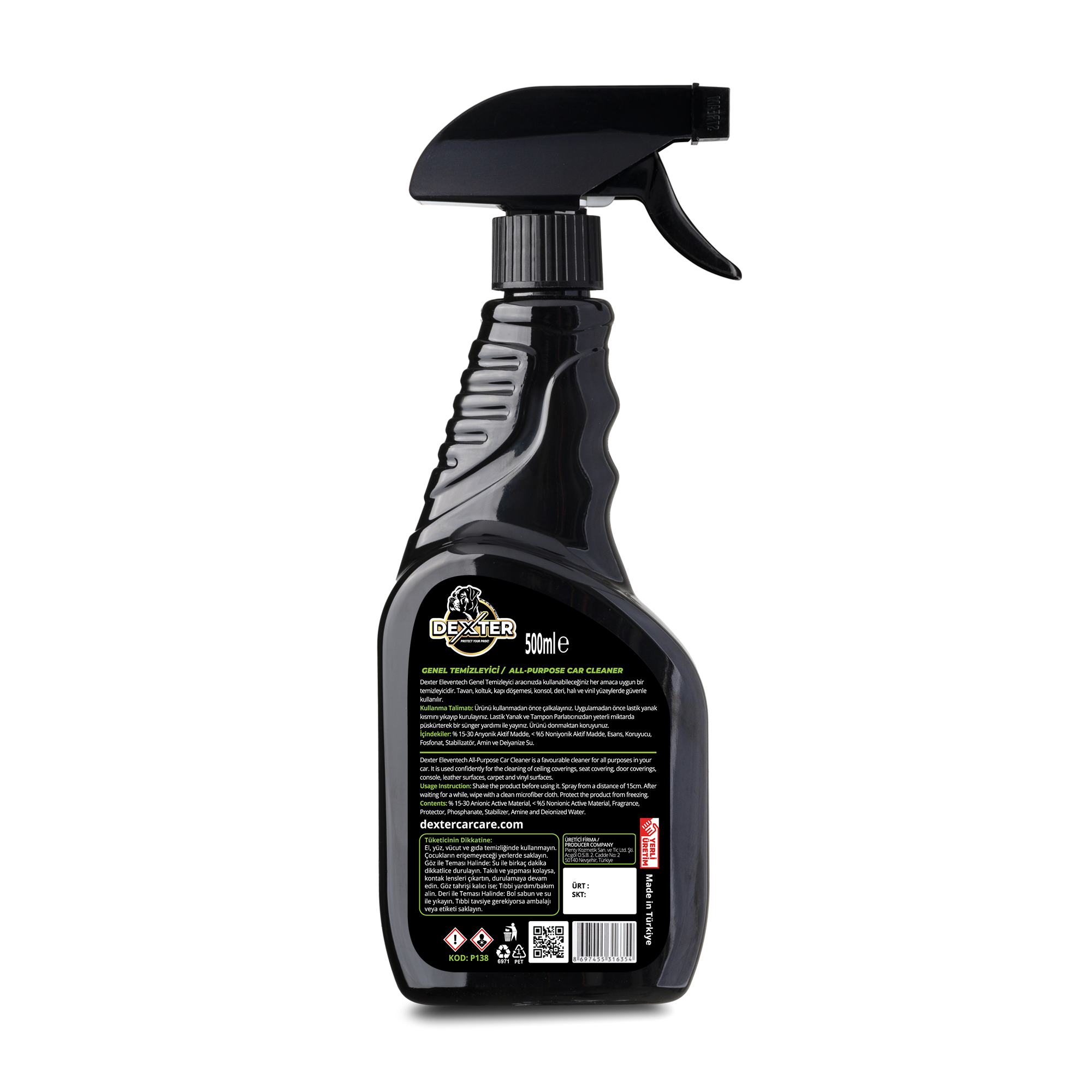 Dexter Genel Temizleyici, toksik madde içermeyen formülüyle hem aracınızı hem de doğayı korur. %100 doğada çözünebilen hammaddelerden üretilen özel formülü, yüzeylere zarar vermeden güçlü bir temizlik sağlar.