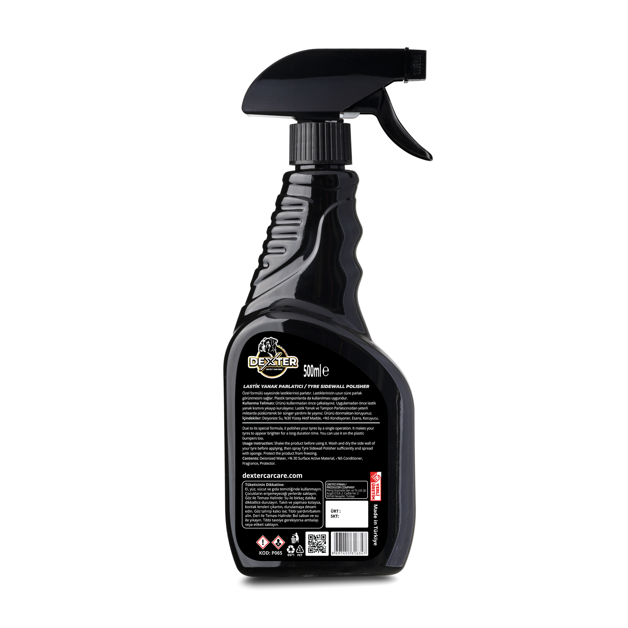 Dexter Lastik Parlatıcı, çoğu ürünün aksine yalnızca 1–2 gün değil, tam 1 hafta boyunca kalıcı parlaklık sağlar. Farma kalite bitkisel gliserinle üretilen özel formülü non-toksik yapısıyla güvenlidir; kimyasal bazlı silikon ürünlerin aksine lastiklerde çatlama yapmaz.